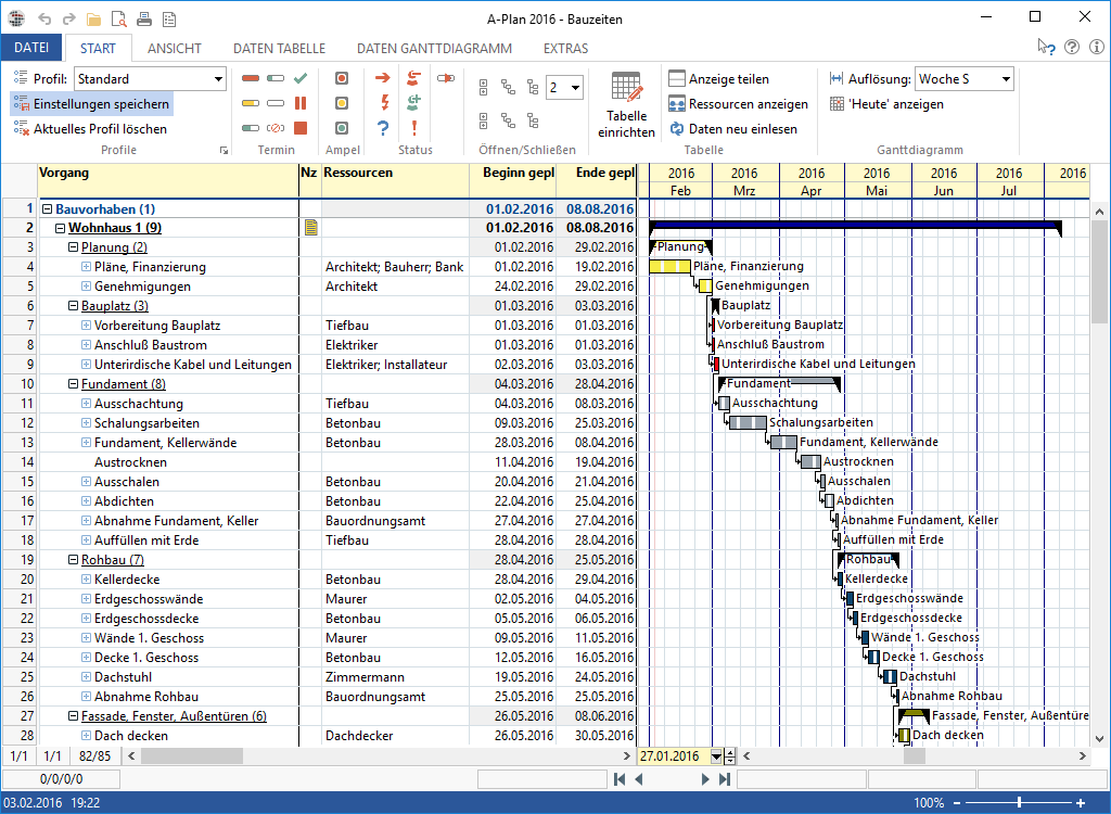 Von der einfachen Terminplanung mit Balkendiagramm bis hin zu einem umfangreichen Projektmanagement mit Ressourcenplanung, Kapazitätsauslastung, Kostenplanung oder Soll-Ist-Vergleich mit Zeiterfassung bietet das PM-Werkzeug eine Vielzahl von Funktionen für unterschiedliche Einsatzfälle. Mit der modernen Oberfläche analog zu Windows 10 und einer guten Übersicht ist A-Plan einfach und intuitiv zu verwenden.